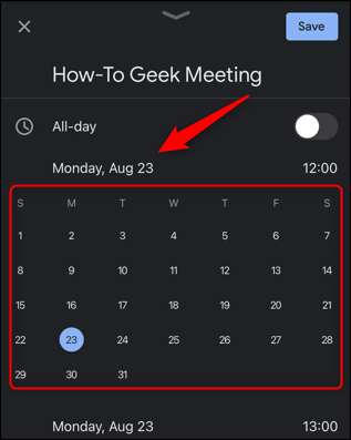 Pentru a schimba data, atingeți data stabilită în prezent. Va apărea un calendar mic. Atingeți data la care doriți să programați întâlnirea.