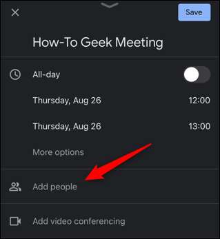 Apoi, atingeți opțiunea "Adăugați oamenii" pentru a invita oamenii la evenimentul calendaristic.