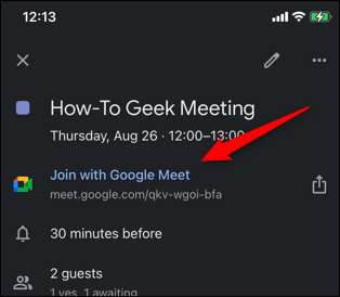 Când este timpul să vă alăturați întâlnirii, deschideți aplicația Google Calendar și atingeți evenimentul.