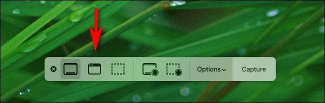 Alternativ, puteți Rulați aplicația de screenshot (sau apăsați SHIFT + COMAND + 5), apoi selectați butonul "Fereastra selectată" (arată ca o pictogramă mică de fereastră.) În bara de instrumente de ecran care apare.