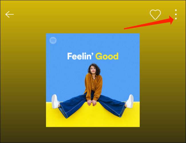 Aplicația Android's Android Are o abordare ușor diferită pentru a vă permite să găsiți melodii într-o listă de redare. Încărcați orice listă de redare și apoi apăsați pictograma cu trei puncte din colțul din dreapta sus al ecranului.