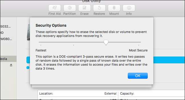 Dacă sunteți utilizator Mac, utilitarul de disc poate scrie informații aleatorii pe orice unitate întreagă. O singură trecere cu date aleatoare va împiedica majoritatea programelor de recuperare, dar dacă sunteți la fel de paranoic ca guvernul SUA, puteți rula și mai multe treceri.