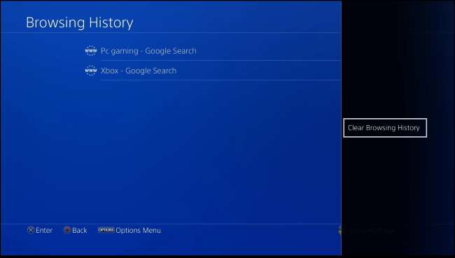 Pentru a vă șterge istoricul, apăsați din nou butonul „Opțiuni” de pe controler, apoi faceți clic pe butonul „Ștergeți istoricul navigării”.
