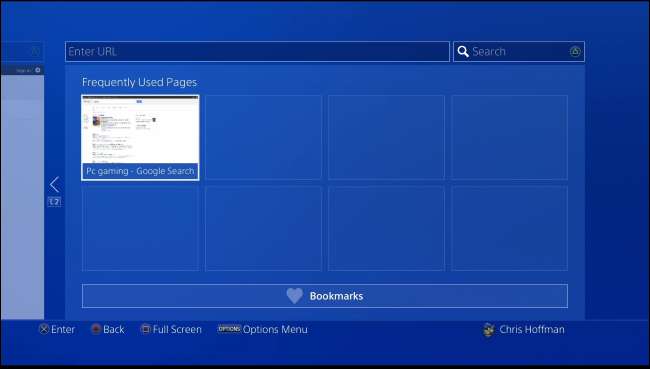 PS4 vă amintește, de asemenea, o listă a paginilor dvs. utilizate frecvent (cele pe care le-ați deschis o grămadă în ultima vreme). Pentru a deschide lista, apăsați butonul „R2” de pe controler (declanșatorul din dreapta) din ecranul principal de navigare.