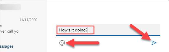 Conversația se va deschide și puteți introduce caseta de text și puteți selecta Emoji pentru a adăuga. Faceți clic pe pictograma planului de hârtie pentru a trimite mesajul.