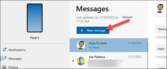Cu toate că acordarea permisiunii, caracteristica este acum gata de utilizare. Deschideți aplicația dvs. de telefon pe Windows PC și faceți clic pe fila "Mesaje" din panoul lateral.