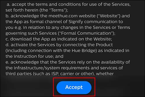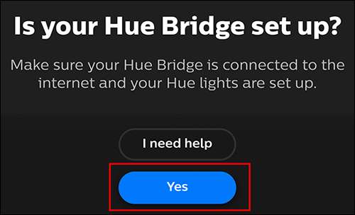 Apoi, vă va întreba dacă este înființat podul dvs. de Hue. Dacă este, minunat! Continuați și atingeți "Da". Dacă nu este, verificați ghidul nostru Cum să vă configurați luminile Philips Hue .