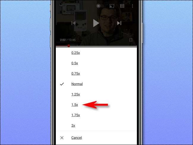 După aceea, închideți meniul, iar videoclipul va fi reluat la viteza selectată. Dacă aveți nevoie să o schimbați înapoi la viteza obișnuită, atingeți din nou butonul Ellipses și modificați viteza la "1."