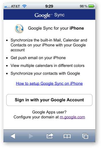 Pentru a adăuga calendare suplimentare, trebuie să vă deschideți browserul Safari pe iPhone și să accesați http://m.google.com/sync
