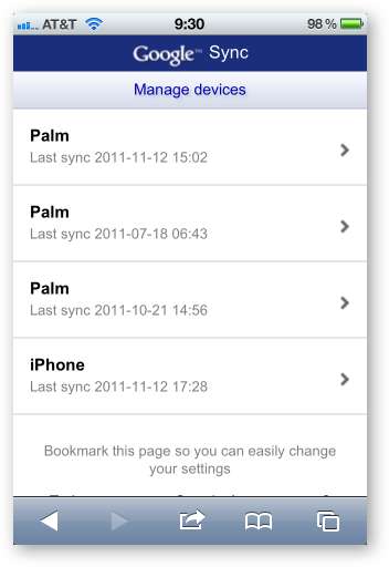 Dacă aveți probleme cu pagina web m.google.com/sync care nu se redirecționează corect din browserul dvs. mobil, puteți accesa și https://www.google.com/calendar/iphoneselectați din browserul computerului pentru a activa și a dezactiva calendarele pentru iPhone. Acest lucru va ocoli selecția dispozitivului, dar poate funcționa pentru dispozitivele non-iOS conectate la Gmail prin Exchange.