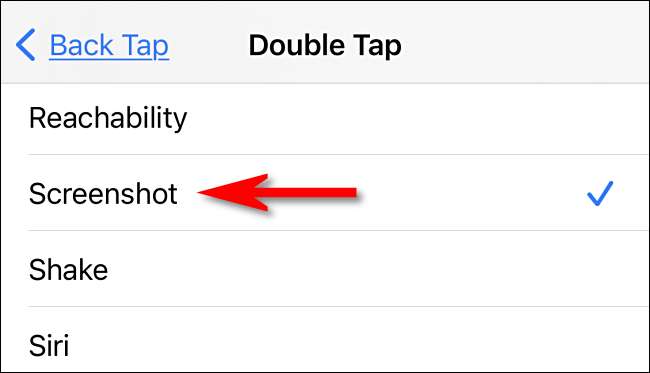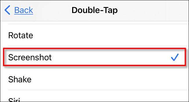 Apoi, alegeți dacă doriți să faceți o captură de ecran atingând de două ori pe iPhone-ul înapoi ("robinet dublu") sau de trei ori ("TAPLA TAP") și atingeți opțiunea de potrivire.