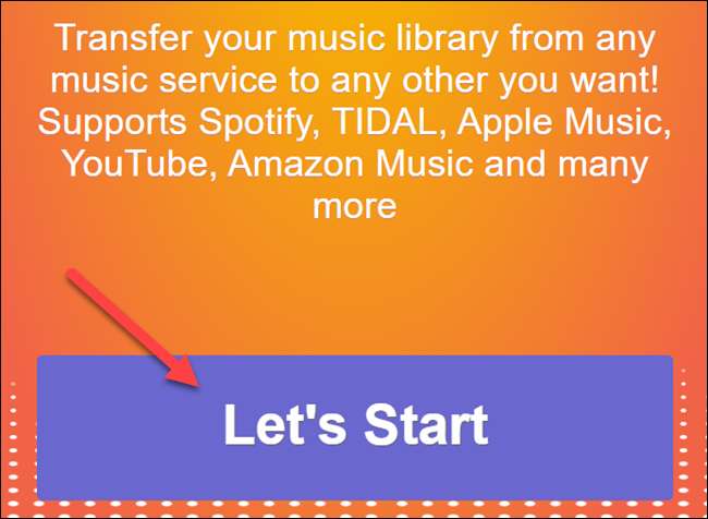 În primul rând, mergeți la Tune site-ul meu de muzică Într-un browser web desktop, cum ar fi Google Chrome. Apoi, faceți clic pe butonul mare "Hai să începeți".