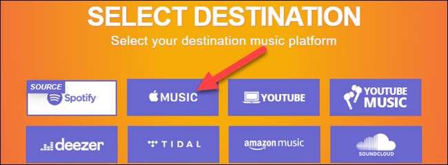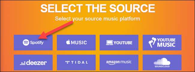 Acum, selectați serviciul de muzică sursă (aplicația pe care o veți transfera de pe playlisturi). În acest caz, folosim Spotify.