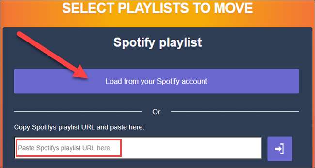 Apoi, aveți două alegeri. Puteți încărca liste de redare Spotify din contul dvs. sau puteți lipi adresa URL a unei anumite listă de redare în caseta de text.