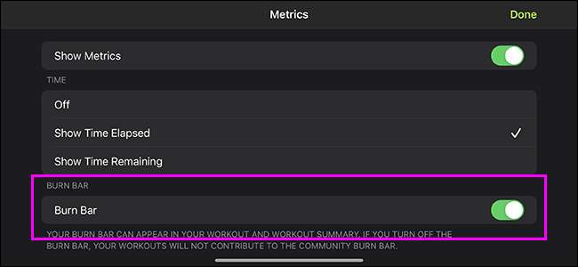 După prima dvs. fitness + antrenament, există o opțiune pentru a opri bara de ardere. Dacă ați pierdut-o, opțiunea de a dezactiva poate fi puțin greu de găsit.