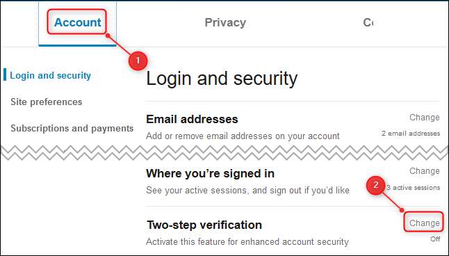 Faceți clic pe fila Cont, derulați în jos până la secțiunea „Verificare în doi pași”, apoi faceți clic pe linkul „Modificare”.