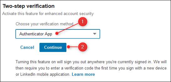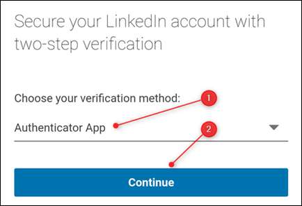 Alegeți-vă metoda - vom folosi o aplicație de autentificare - și apoi faceți clic pe butonul „Continuați”.