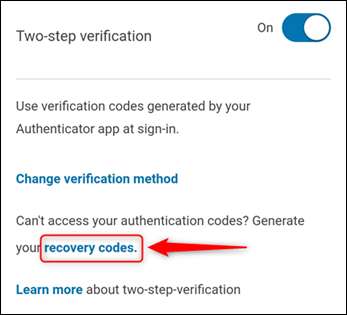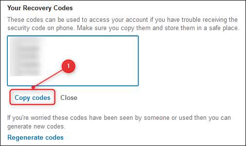 Atingeți linkul „Coduri de recuperare” pentru a afișa codurile de rezervă, astfel încât să puteți intra în continuare dacă vă pierdeți vreodată telefonul.