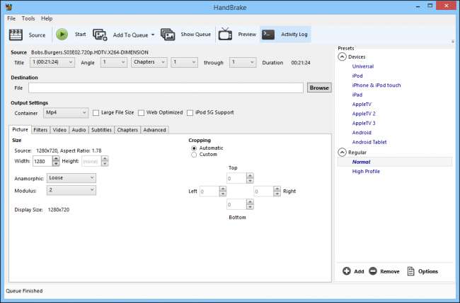 Handbrake există de peste zece ani și rămâne una dintre cele mai bune aplicații pentru transcodarea fișierelor video de la un format la altul. Frâna de mână este open source și complet lipsită de orice șiruri atașate sau oferte umbrite; primești doar ceea ce descarci, nimic altceva.
