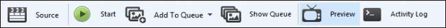 De-a lungul rândului de sus sunt șase butoane în care puteți manipula funcții esențiale, cum ar fi deschiderea fișierului sursă, adăugarea unei lucrări la coadă și un simplu buton „Start”, care spune totul.