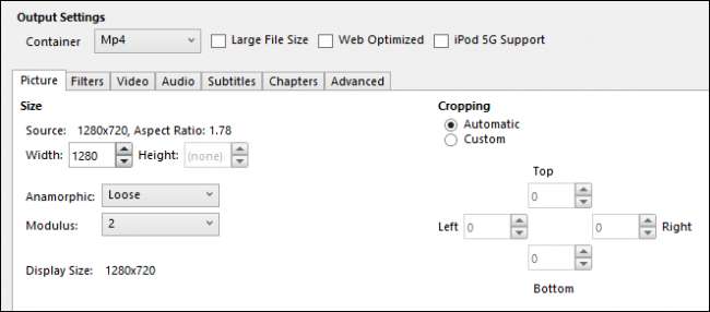 Pentru această operațiune, nu facem ajustări la nimic în setările de ieșire. Aceasta este o conversie directă de la .MKV la .MP4, așa că vom lăsa setarea containerului așa cum este. Singurul alt lucru de făcut este să-i spunem Handbrake unde să pună noul nostru fișier și cum să-l numim.