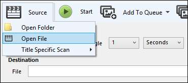 Primul lucru pe care îl facem atunci este să ne selectăm sursa. Faceți clic pe butonul „Sursă” și alegeți „Deschideți fișierul” din opțiunile derulante.