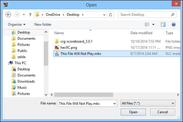 Răsfoiți sistemul de fișiere până unde se află fișierul problematic, selectați-l și faceți clic pe „Deschidere”.