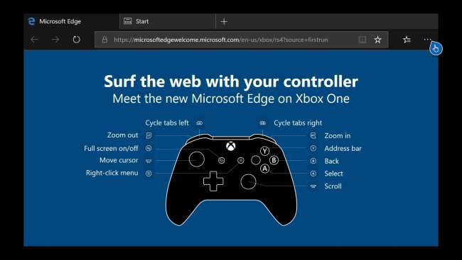 Pentru a găsi această caracteristică, apăsați butonul „A” de pe controler pentru a selecta meniul din colțul din dreapta sus al browserului Edge.