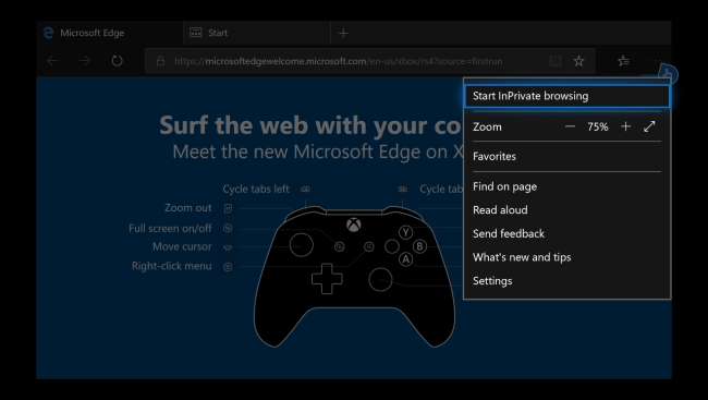 Browserul Microsoft Edge de pe consolele Xbox One are un modul de navigare privată numit „Navigare privată”. Utilizați modul de navigare InPrivate pentru a naviga pe web fără a salva date istorice în consola dvs.