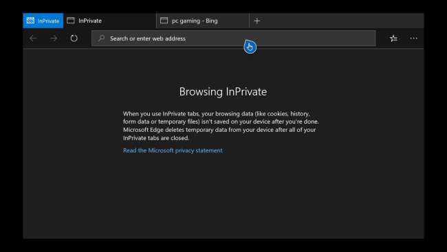 Edge trece la modul de navigare InPrivate. Acum puteți naviga în mod privat.