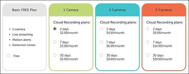 Planul de 2,99 USD / lună nu este o cale greșită de urmat. Oferă o cameră și stochează înregistrările dvs. timp de până la două zile, ceea ce vă permite să le vizualizați și să le salvați.