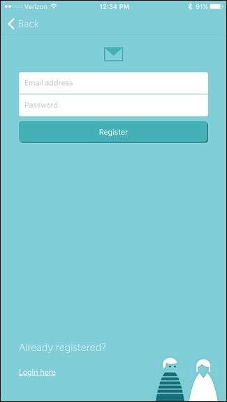 După ce descărcați și instalați aplicația pe smartphone-ul de rezervă, apăsați pe „Înregistrați” din partea de jos pentru a începe.