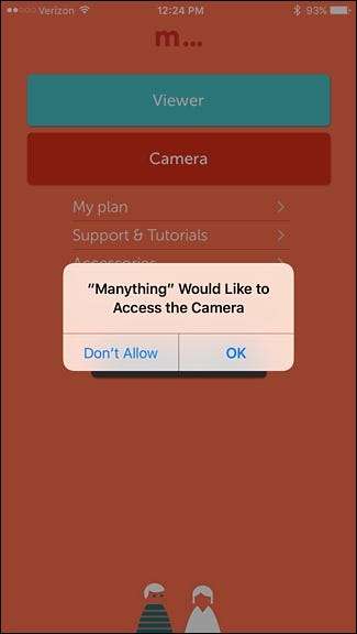Dacă o atingeți, veți afișa vizualizatorul, unde veți avea o vizualizare în timp real a ceea ce se întâmplă. Veți vedea, de asemenea, o listă de înregistrări de mai jos, dacă a fost detectată mișcare. Aceste înregistrări sunt încărcate în cloud (adică serverele Manything).