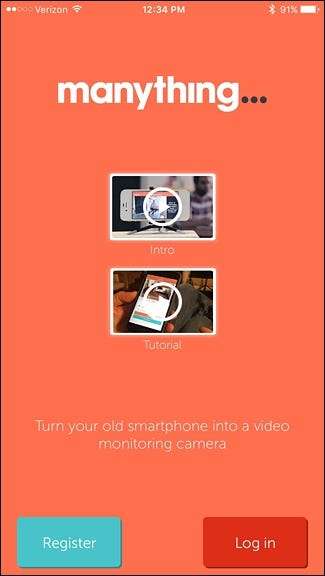 Cu această configurare, descărcați și instalați aplicația Manything pe smartphone-ul dvs. principal. Aplicația funcționează pe mai multe platforme, ceea ce înseamnă că puteți avea un dispozitiv Android configurat ca o cameră și un iPhone ca vizualizator sau invers. Când deschideți aplicația, atingeți „Conectați-vă” în partea de jos și introduceți adresa de e-mail și parola cu care v-ați înscris.