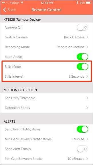 De exemplu, „Modul Stills” va face camera să facă fotografii continue în loc să înregistreze videoclipuri, ceea ce poate ajuta la lățimea de bandă dacă Wi-Fi-ul dvs. nu este la îndemână.