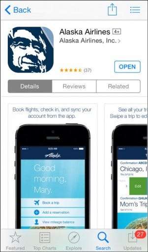 Pentru a începe, mai întâi va trebui să găsiți aplicația companiei dvs. aeriene în Google Play sau iOS App Store. În acest exemplu, vom arăta ceea ce ar trebui să vă așteptați să întâlniți în timp ce zburați cu Alaska Airlines, deși experiența este aproape identică pentru American Airlines, United, Virgin și colab. De asemenea, ar trebui să țineți cont de faptul că, deși majoritatea companiilor aeriene mai mari oferă propriile aplicații, nu toate au acest tip de bani de aruncat și vor opta pentru ruta de e-mail.