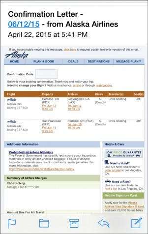 Pentru a utiliza acest serviciu, mai întâi va trebui să vă accesați e-mailul și să găsiți scrisoarea de confirmare pe care ați primit-o de la compania aeriană. Atingeți și, de acolo, puteți derula în jos pentru a găsi un buton pe care scrie „Înregistrare web”.