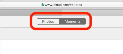 Pentru a comuta între vizualizările Momente și Fotografii, faceți clic pe opțiunea dorită din partea de sus a ecranului.