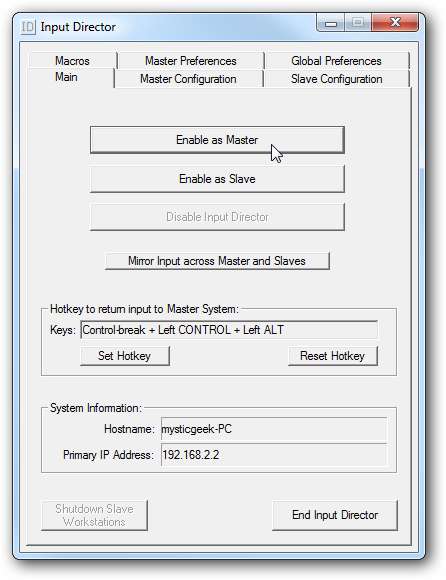 În Preferințe globale puteți decide cum se va comporta fiecare computer. Rulați directorul de intrare la pornire pentru fiecare dintre mașini și activați-le ca Master sau Slave la pornire. În acest fel nu va trebui să vă întoarceți și să le reconfigurați după o repornire.