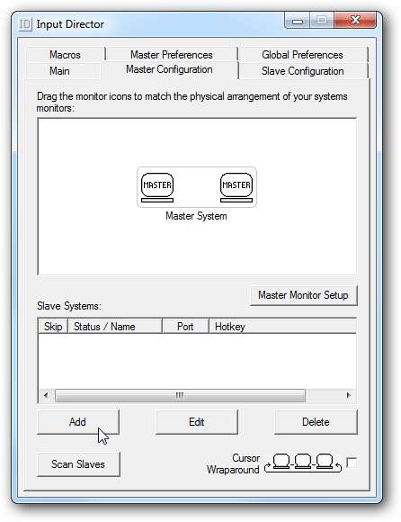 Aranjați monitoarele cum vă place pe sistemul Master, unde Master are aici două monitoare. Apoi faceți clic pe Adăugare sub Slave Systems pentru a adăuga celelalte mașini.