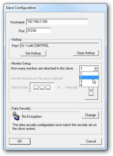 Adăugați celelalte mașini în configurația Slave introducând numele gazdei sau adresa IP a celor pe care doriți să le controlați. Aici puteți configura o tastă rapidă, o cantitate de monitoare pe mașina sclavă și securitate.