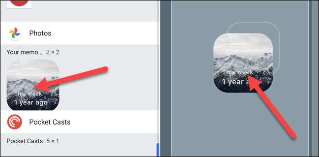Derulați prin lista de widget-uri și căutați "fotografiile". Widget-ul se numește "amintirile tale". Atingeți și țineți apăsat widgetul, apoi glisați-l în jurul ecranului de pornire. Eliberați degetul pentru ao lăsa.