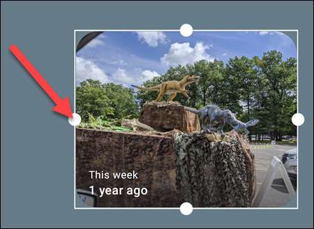 Cam despre asta e. Widget-ul prezintă titlul memoriei pe care îl trag de la, cum ar fi "în această săptămână acum 1 an" sau data la care a fost realizată fotografia. Este o modalitate foarte bună Vedeți fotografiile Google Fără să se angajeze într-unul ca fundal.