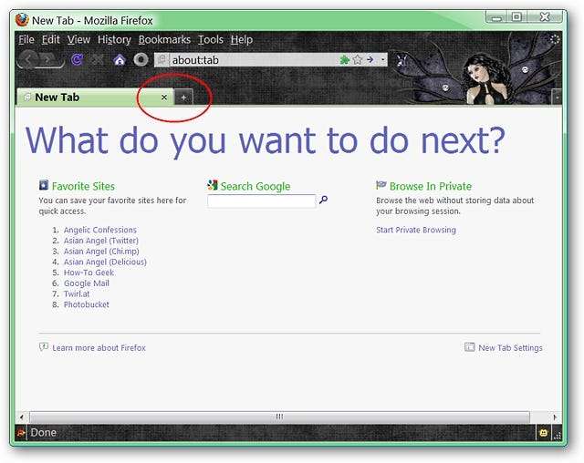 Aici puteți vedea „Butonul Tabului Nou” așezat pe „Tab Tab” ... dar nu pentru mult timp!
