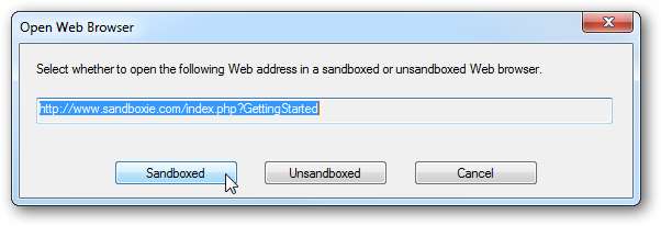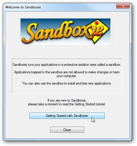 Prima dată când utilizați Sandboxie, este o oportunitate de a vedea cum este să rulați un browser în Sandboxie, parcurgând tutorialul de pornire în modul sandbox.