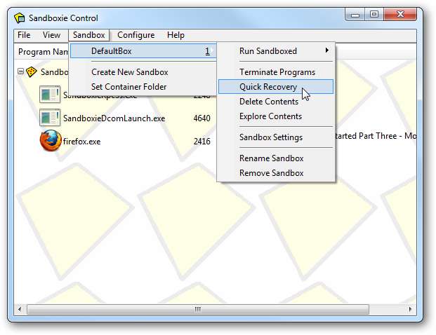 Pentru a recupera un fișier în controlul Sandboxie accesați Sandbox \ DefaultBox \ Quick Recovery.