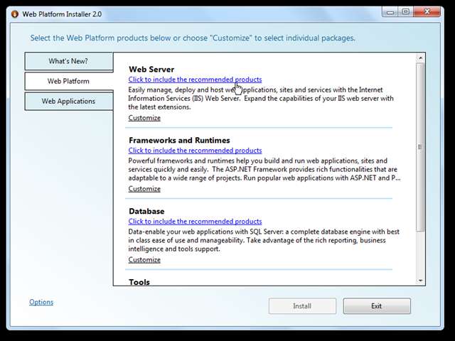 Puteți rula oricând Web Platform Installer în viitor și puteți adăuga mai multe aplicații, dacă doriți. Instalarea adaugă un link către programul de instalare din meniul Start; rulați-l și repetați pașii de mai sus cu noile selecții.