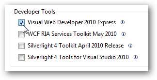 Am vrut să instalăm Visual Web Developer 2010 Express, așa că selectați Personalizați sub Instrumente , și selectați Visual Web Developer 2010 Express .