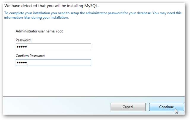 Introduceți o parolă de administrator pentru MySQL înainte de a începe configurarea.