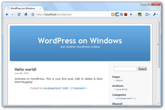 Și iată blogul implicit care rulează.